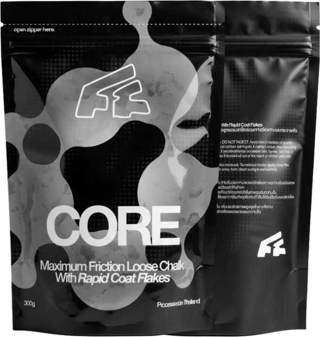 ชอล์กผงทั่วไปมักจะให้ฟีลเหมือน "ฝุ่นตาย" คือมันจะร่วงออกจากมือก่อนจะทันได้ติดผิว ส่วนแบบก้อนก็ต้องมานั่งบี้ให้เมื่อย CORE เลยแก้เกมด้วยการแปรรูป แมกนีเซียมคาร์บอเนตให้กลายเป็นเกล็ด (Flakes) ที่นุ่มและฟู